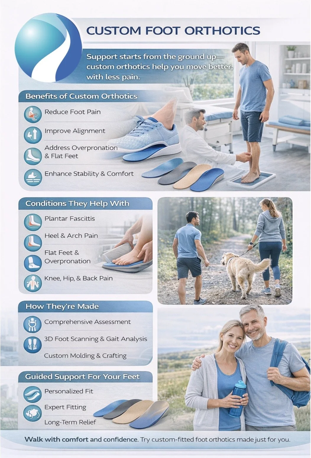 If you’re experiencing foot pain, knee pain, back pain, or postural issues, custom orthotics may be the missing piece in your care.